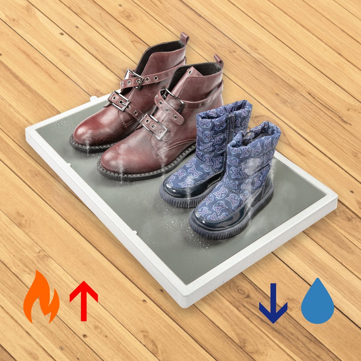 - Praktisk och bekväm: Värmarens design är skapad för enkelt användande – du behöver inte ta av dig skorna, och ytan kan enkelt torkas av med en fuktig trasa när värmaren har svalnat.