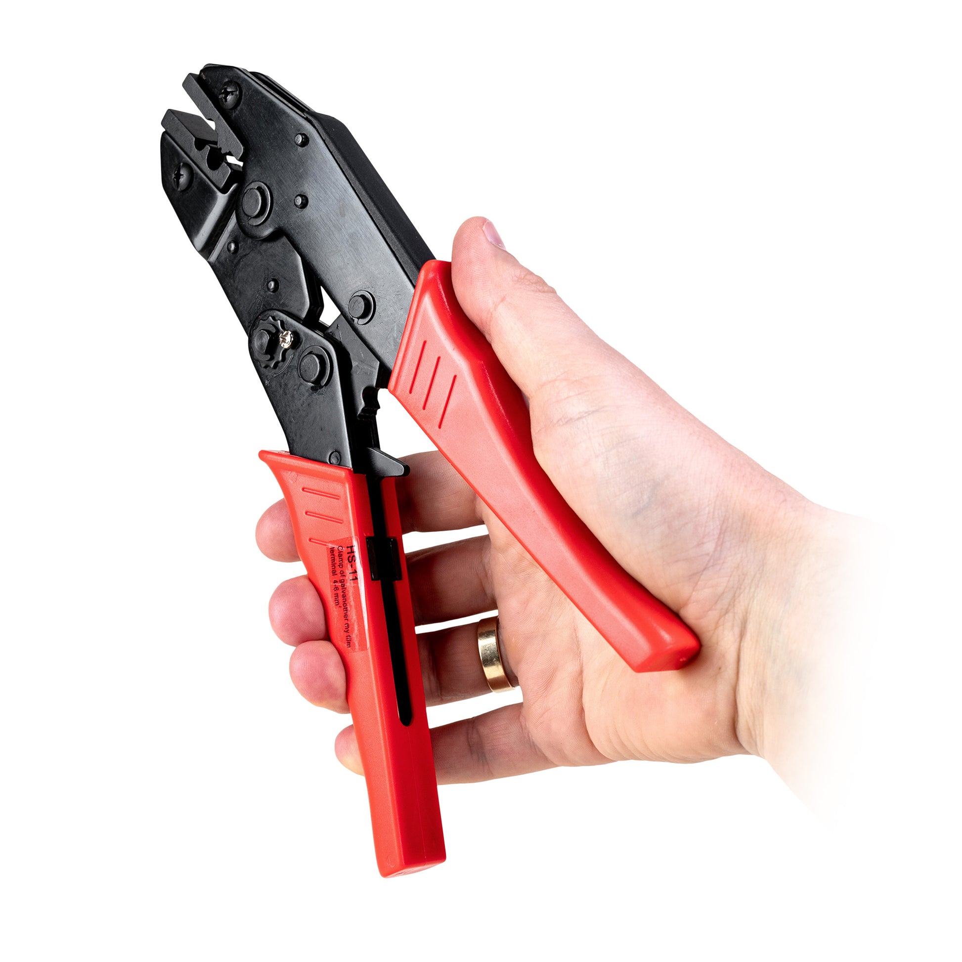 - Exakt och effektiv krympning av krokodiltång och nitar av typen kontakt